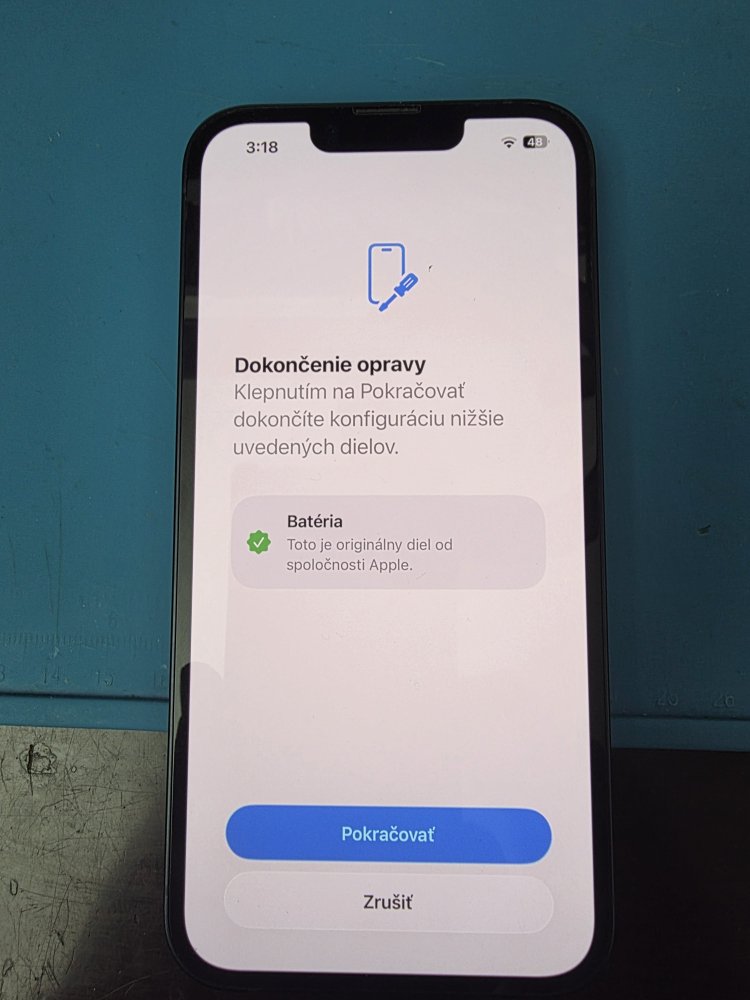 - Aktivuje sa služba Apple Repair Assistance. Označenie batérie ako “Nový diel”.